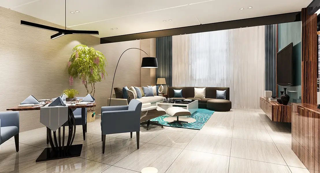 Living, Dining, Bedrooms, Utility, Kitchen, Study: Vitrified tiles.